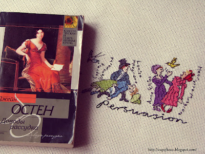 Я уже приступила к вышивке и к… чтению. Да, я решила не просто вышивать, но и перечитать все романы Джейн Остен. Так что ждите книжно-вышивальные заметки. Каждый роман – отдельная часть вышивки. Пока не придумала названия этому «проекту» , но уже взялась за работу . Начнем с романа «Доводы рассудка». Присоединяйтесь к чтению)))